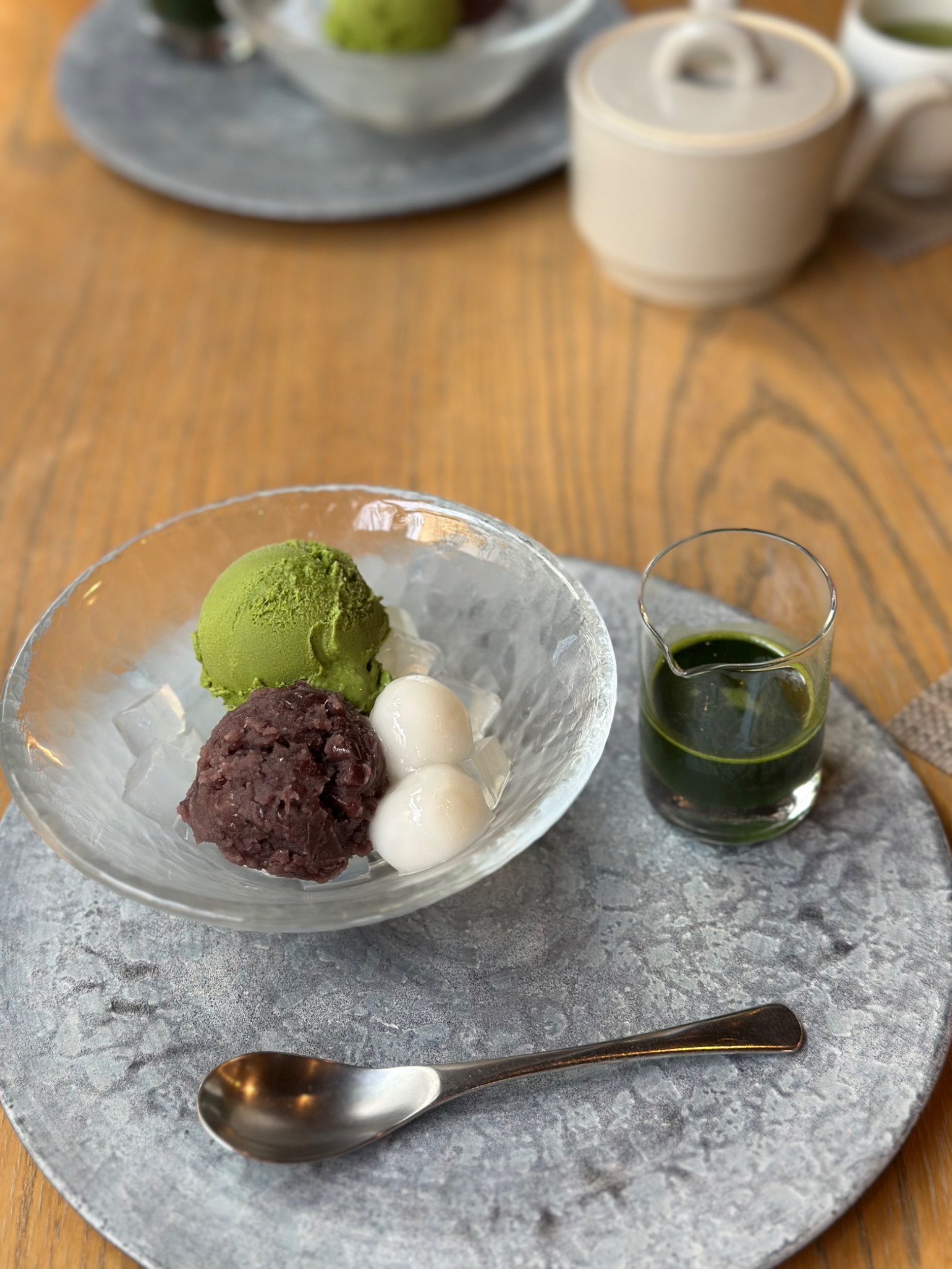 まぁこさんとわたしは、抹茶あんみつをいただきました。実は黒蜜のあんみつが苦手なのですが、これは美味しい🥺お世辞抜きで美味しい!